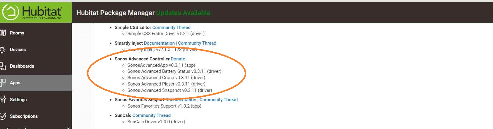 If the Sonos Advanced Controller is still elusive, let's investigate in HPM. Navigate to HPM and open the View Apps and Drivers sections.