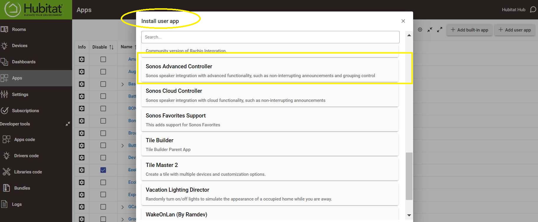 I have installed Sonos advanced controller using HPM and I can see the drivers listed but I can not see and Sonos advanced controller in App list. I have also tried uninstalling and reinstalling but still no app