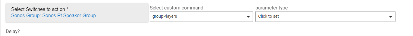 the grouping of the speakers still wont work running a custom command with one of the group speakers not available unless i'm doing something wrong? should i be picking a parameter type?