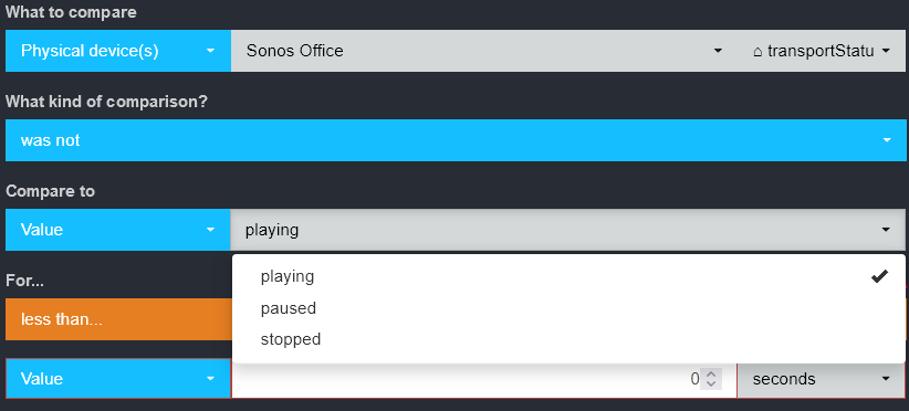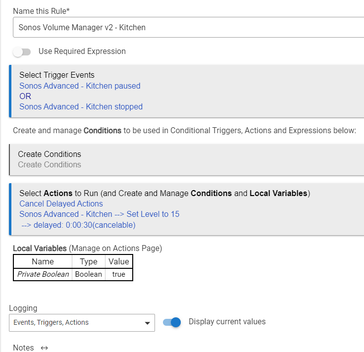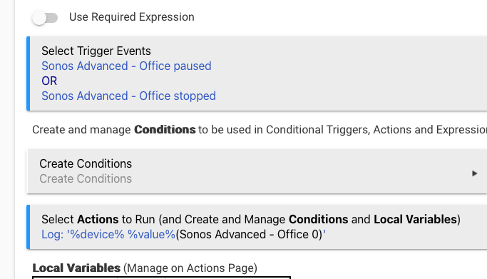 Tried to recreate it using sonos advanced device but cant get it to work, unsure if the rule is right as i don't have a reference anymore due to rm crashing. Used to reset the volume back to 15 once the music had been stopped or paused, any ideas?