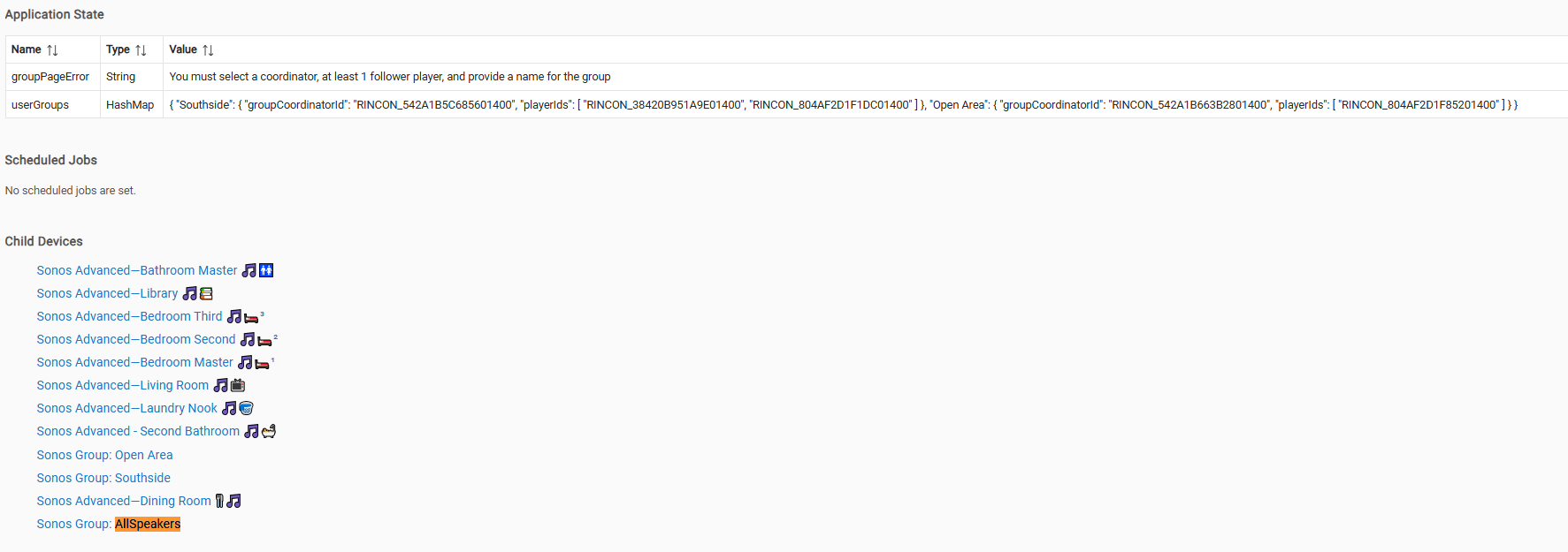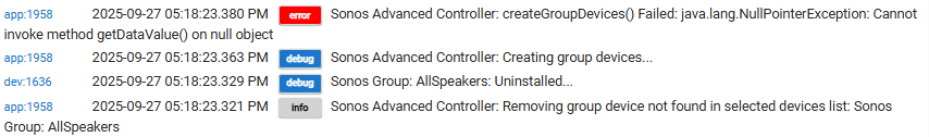I tried all kinds of things to get it to work. I tried re-creating the virtual Sonos’s from your app, but it didn’t recreate all five of them, so I kept trying until all 5 “took”. Unfortunately when it dropped one of them from Hubitat, it removed them from my many rules.