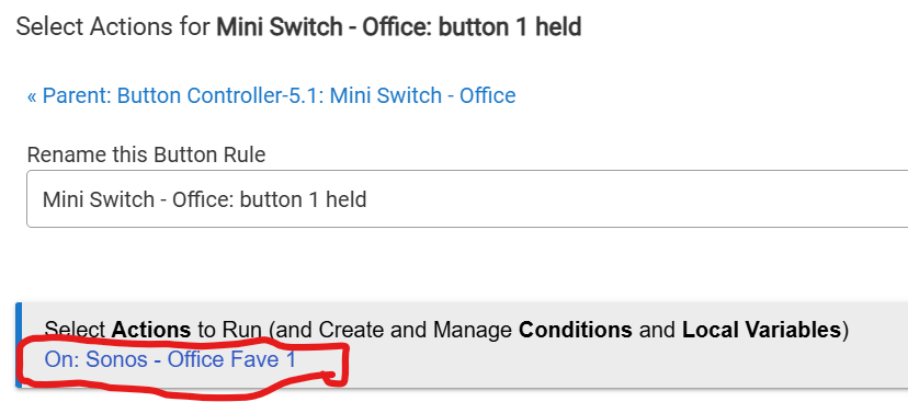 I installed the Sonos Favorites app using the Hubitat Package Manager. I've configured 1 preset using "80s Greatest Hits" (See Fig. 1). Then I configured this newly created "Sonos - Office Fave 1" using an Aqara mini switch (See Fig. 2). However, when I long press the button, the ONLY song which will play is the first song in my music collection (38 Special). I tried changing the preset to different things like Elvis Radio, and this same 38 Special song always plays.
