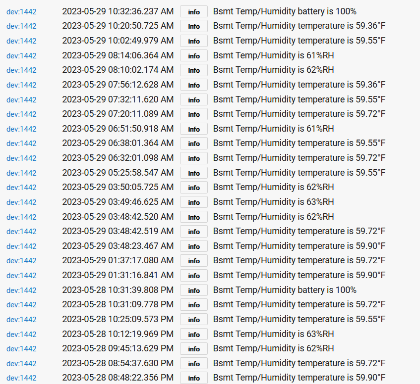 I note that the displayed humidity does not necessarily report to Hubitat. When I’m in the shower I see peaks on the display that aren’t reported to Hubitat.