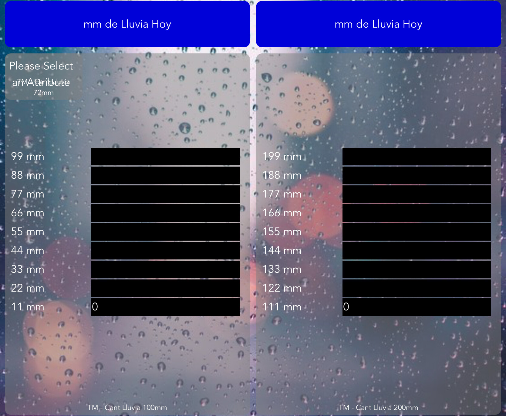 In this case you see black bars because it hasn’t rained lately around here, but it would show blue bars on the filled levels, and where the level is at the moment it would show a gray bar, and above that, black bars.
