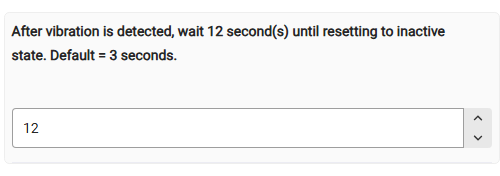 Enable the Debug logging and observer the live logs while the sensor is sensing vibrations all the time. You should see a bunch of debug logs every 3 or every 5 or every 10 seconds - this internal re-triggering time is different for the different devices.