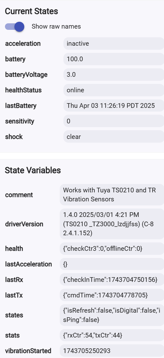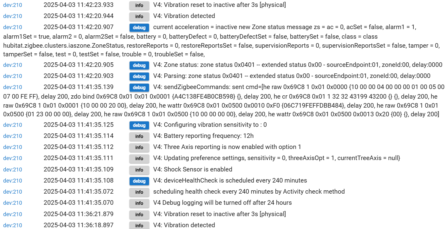 I liked the feature set of the Tuya Zigbee Vibration Sensor driver, but you are right, the native ThirdReality driver is not nearly as chatty. It doesn't report shock.
