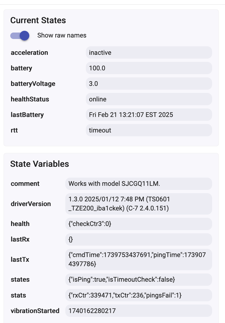 My "current states" properties look nothing like yours and I'm using the same driver 1.3.0