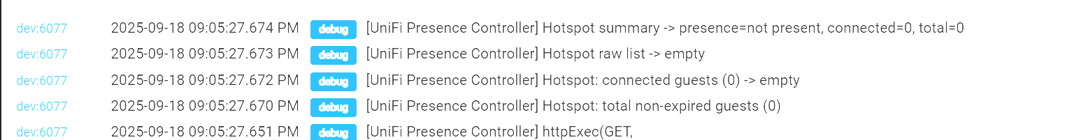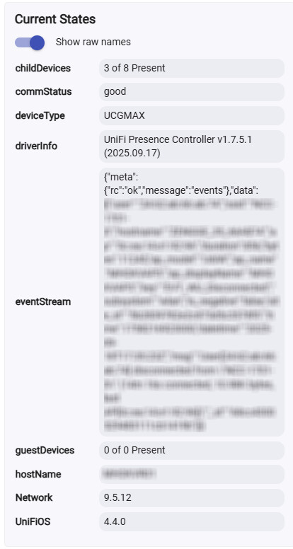 I know there are other UniFi drivers out there that are more comprehensive, but my goal was to make the most efficient presence monitoring. Those others provide more details into UniFi devices and their control. I just wanted presence monitoring.