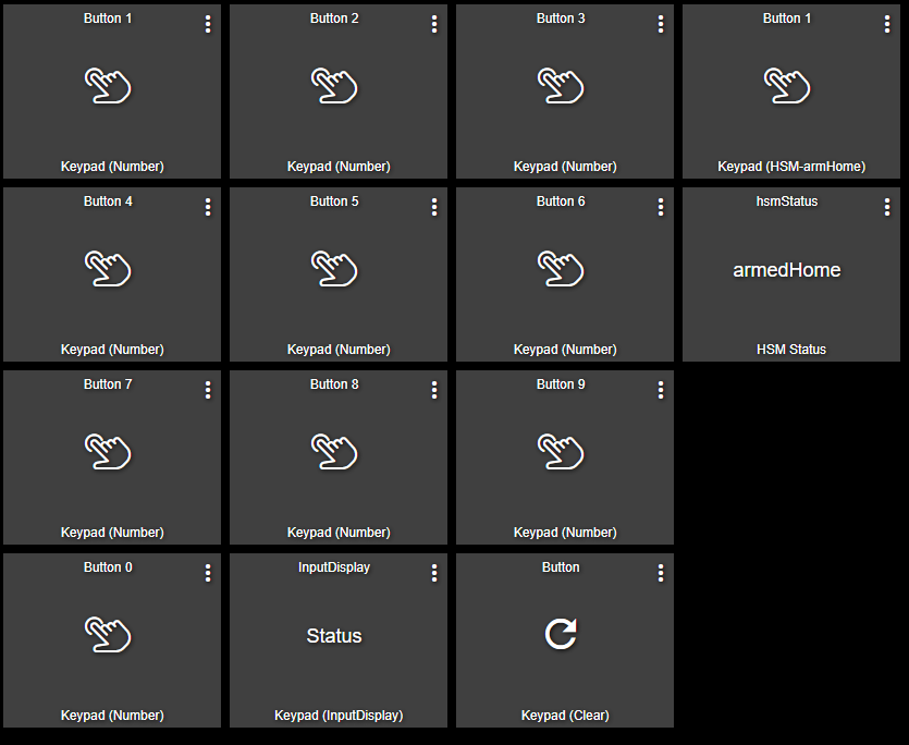 I do have several functional dashboard's working. Getting PIN functionality is what I am missing at the moment. Background: I have been using a DSC alarm system for 3 decades. I am using that user/interface experience as my foundation on which to build. From what I have learned/discovered here in the past couple weeks my present game plan is to attempt to merge past and present. Insights as to how I might proceed, what I am missing, etc. appreciated.