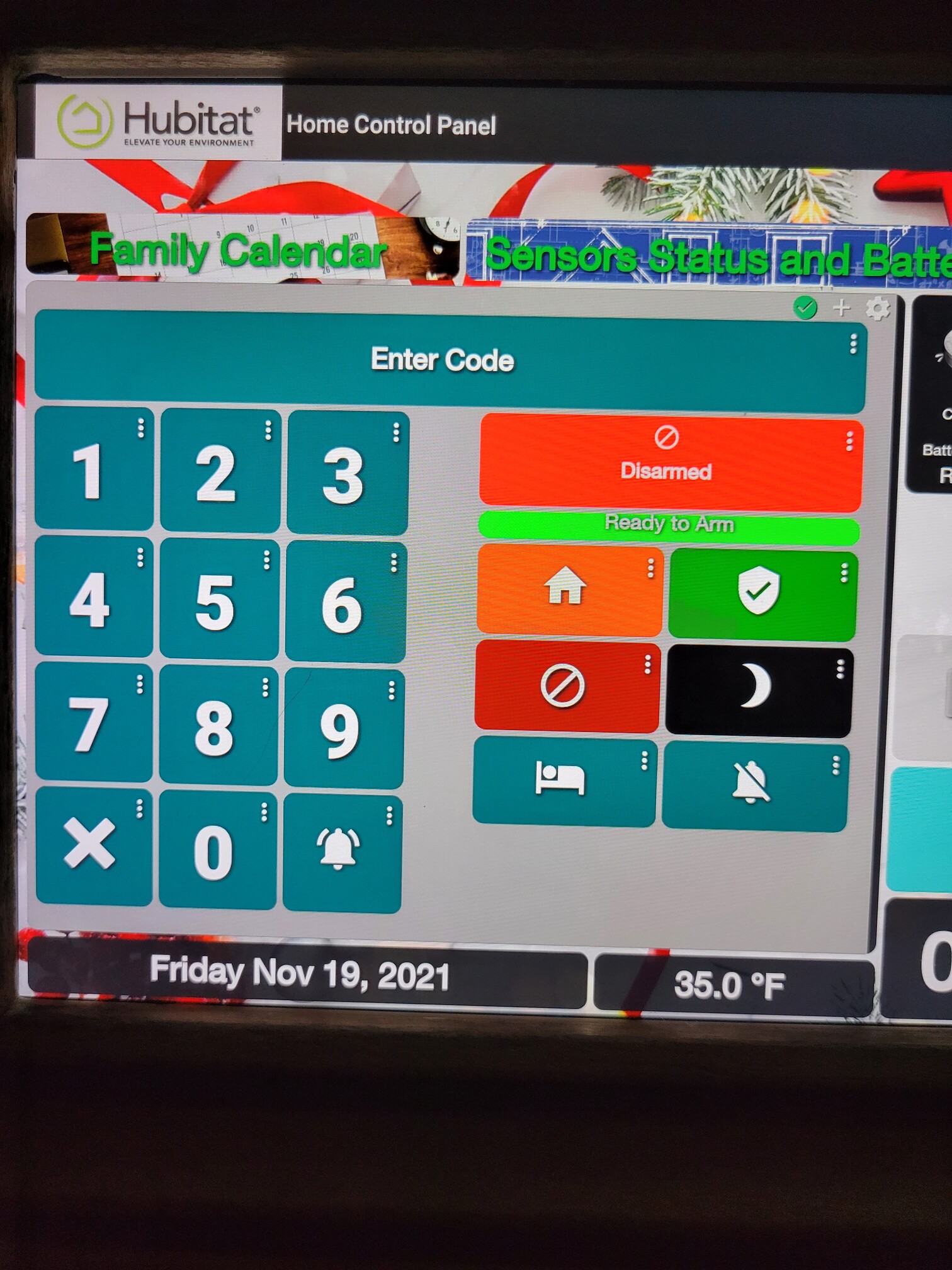 The gap down the middle is the chime device. It goes green down the whole middle. I plan on playing around with adding a second one over it that flashes red during entry delay.