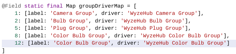 ***12: [label: 'Color Bulb Group', driver: 'WyzeHub Color Bulb Group']***
