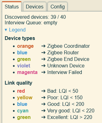 Note: I am willing to change the link color thresholds as I don't understand what LQA/LQI really mean (I know higher is better ). You can find the current color thresholds if you expand the "Legend" section.