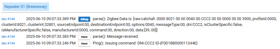 Finally, I'm not so sure I'm extracting the diagnostic insight I should from my ZMD devices that are online. For example: why would there be device neighbors or device children listed with a network address but no device name? And the network addresses don't even exist in my zigbee table on the hub? One of my online ZMD repeaters shows this value for deviceChildren: "170 - 96C1,170 - 0024,170 - 0013", which I interpret to be LQI of 170 for the 3 listed network addresses. But none of those addresses exist on the hub. So I'm stumped.