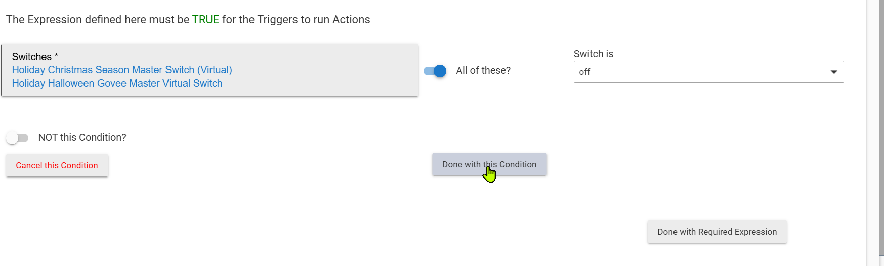 In the above screen, if you click on "Done with this Condition" and then "Done with Required Expression, your Required Expression is properly created.