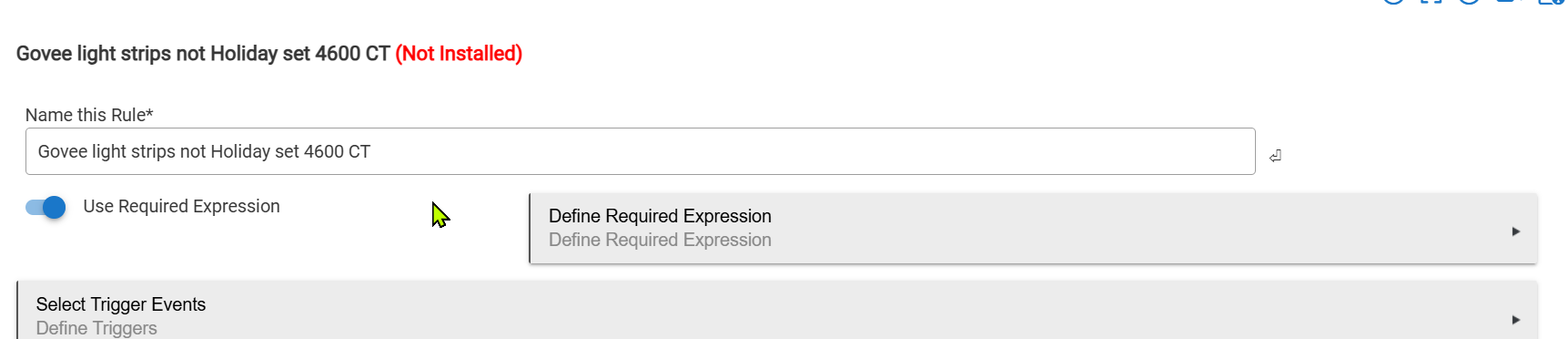 However, if you go directly to click "Done with Required Expression" you end up w/a broken and confusing state of the Required Expression. You return to the Rule's home screen w/out any error messages, but the Required Expression is missing from the rule's home screen.