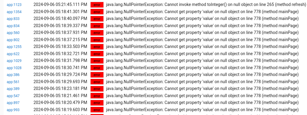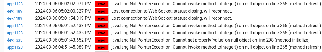 java.lang.NullPointerException: Cannot invoke method toInteger() on null object on line 265 (method refresh)