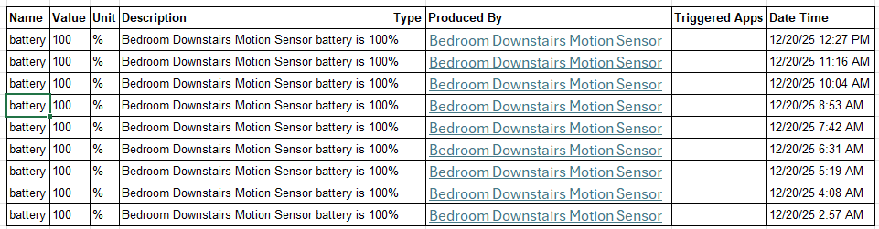 Thank you for the suggestion. Fortunately, the battery event reporting is VERY frequent and reliable.