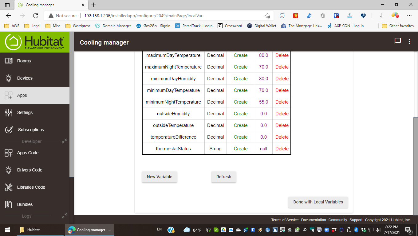 I created a rule with several variables to act as presets with which to compare outside temperatures (see screenshots below) and started building conditions. I got to a point where I could no longer select variables when building a condition. I wanted, for example, to compare the humidity with the outsideHumidity preset. When I get to the point where I check the "relative to a variable" box and try to choose a variable, nothing comes up. I am using the Accessibility/screen reader mode, so I thought I'd turn it off and try in case it is a bug specific to that, but unfortunately no variables showed up.