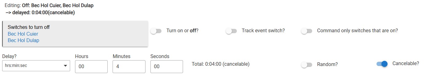 I have the off command, I want when the motion is reactivated, to start owar anather 4 min, not to be suspended. Is what I did ok?