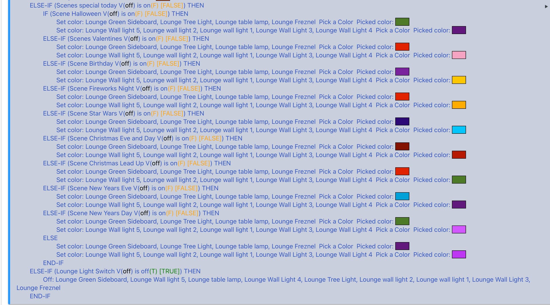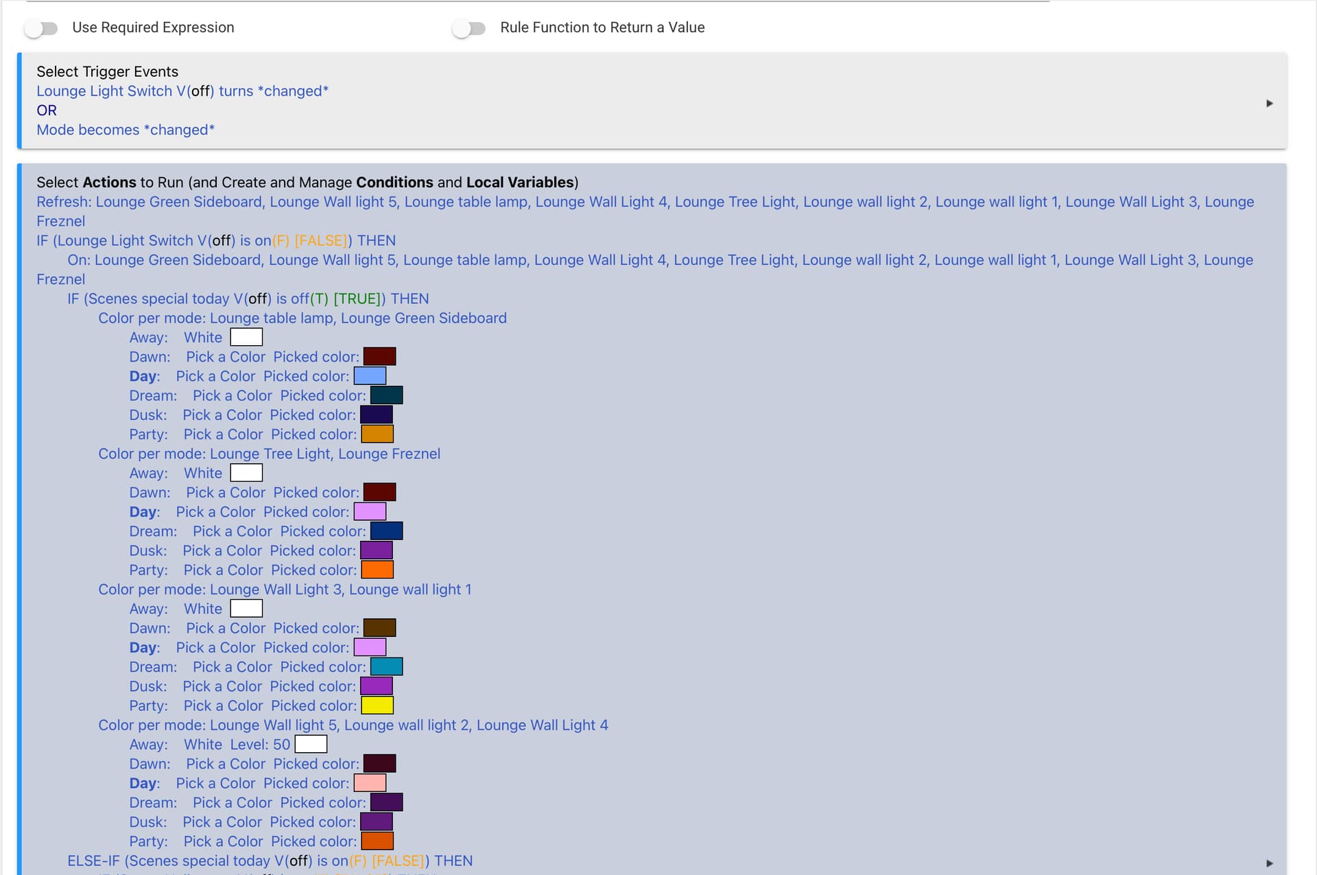 I have added some screen shots of the rule I am currently working on. I am attempting to write a number of rules to replace my Room Lighting setup as I have found that it doesn't work unless a refresh is done on the lights immediately prior.