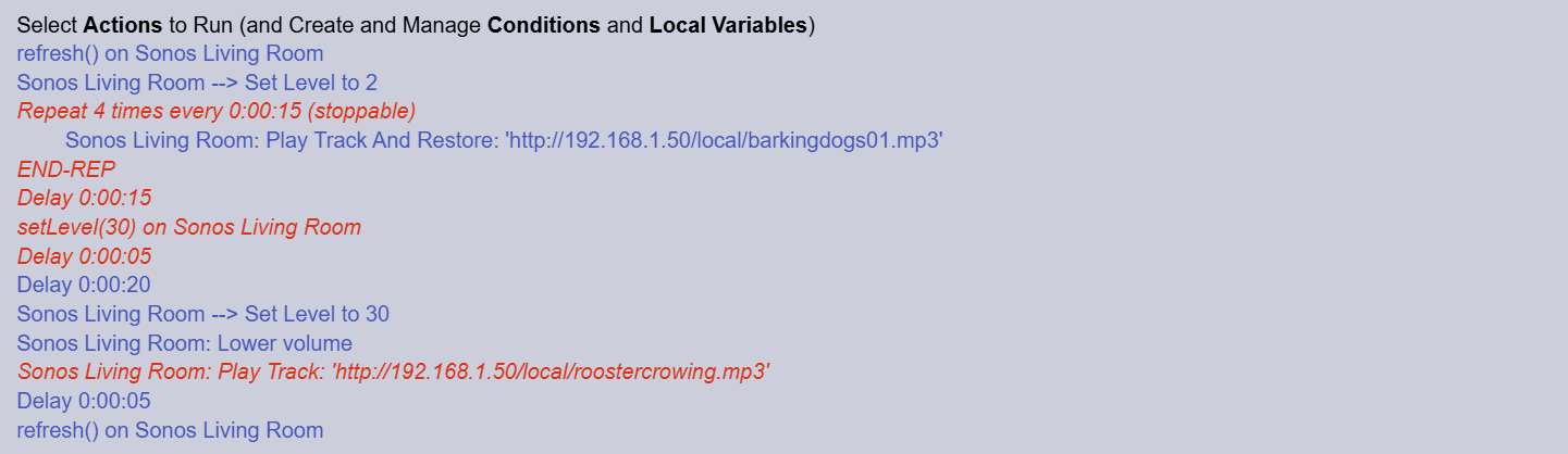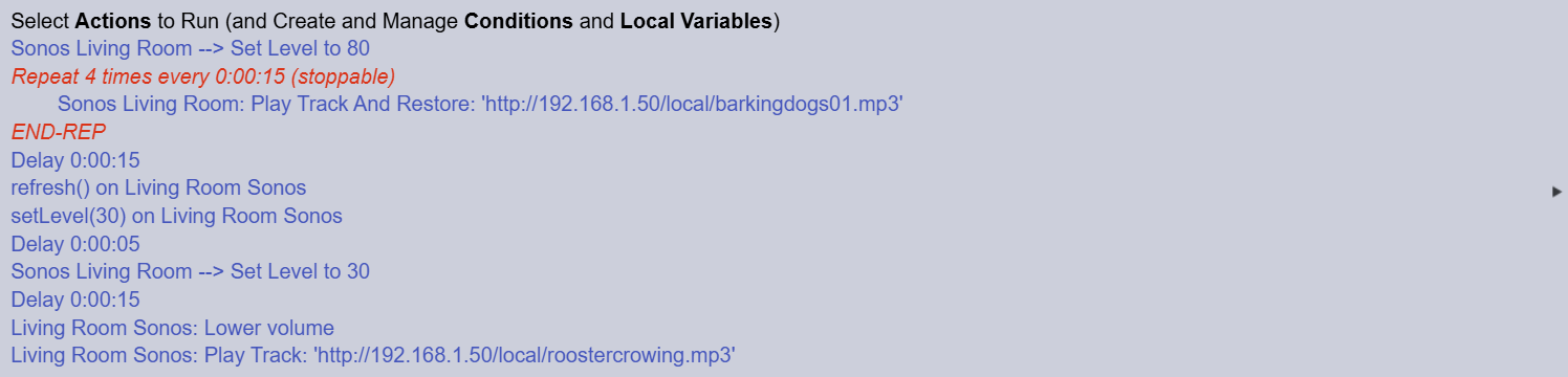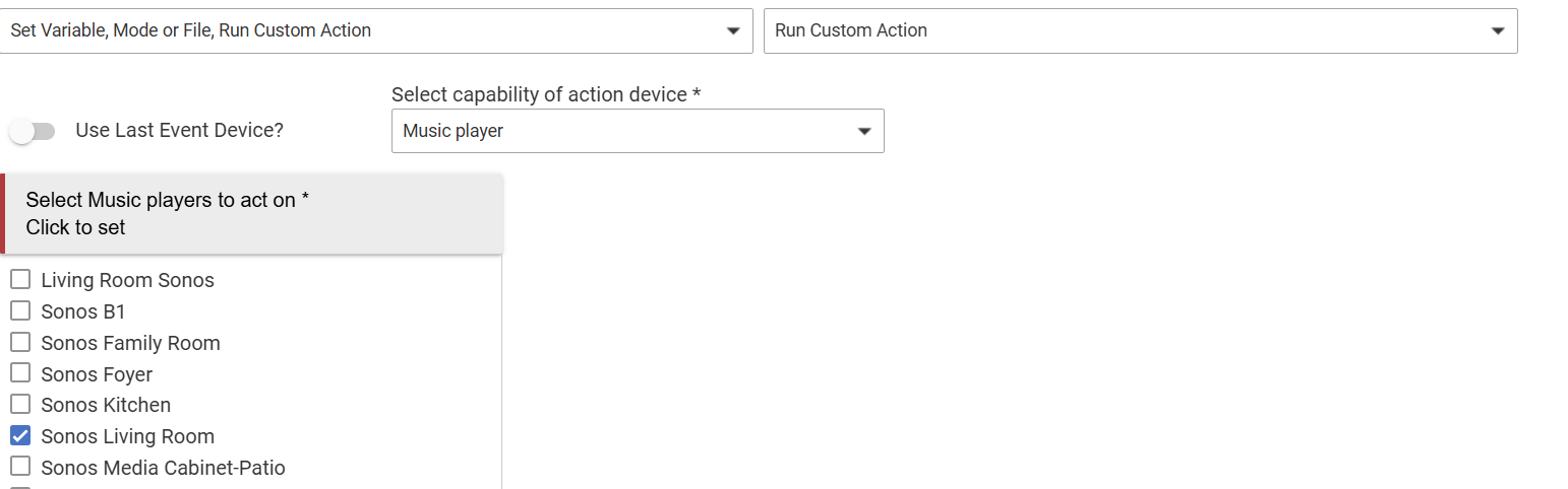 One of my recent problems was of my own making. I had the same Music Player twice in my list of music players, but under different names. One was Living Room Sonos and the other was Sonos Living Room. I had recently renamed them all so Sonos was the first word in the name and they would sort together in my device list. OCD, right? But now that I have corrected the spelling in the Rule so that I am using the same name consistently, it doesn't seem to really fix anything truly. And it begs another question: why is that duplicate name in the list within Rules Machine, but not duplicated when I do the discovery in Sonos Integration. I can't figure out how to remove the extraneous Living Room Sonos from the list of music players within Rules Machine.