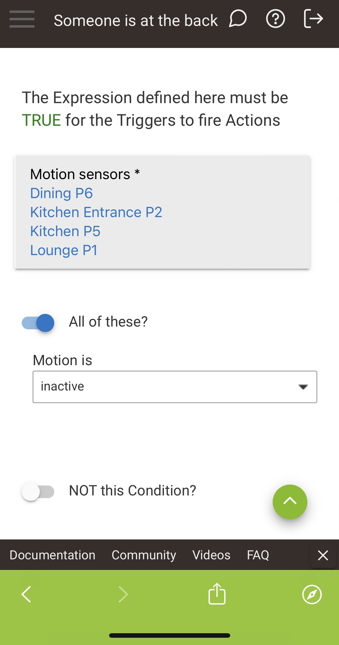 Using that logic I should be able to create a required expression with multiple sensor and specify they should be inactive for 15 mins before the trigger can be active aged but I can not seem to do this.