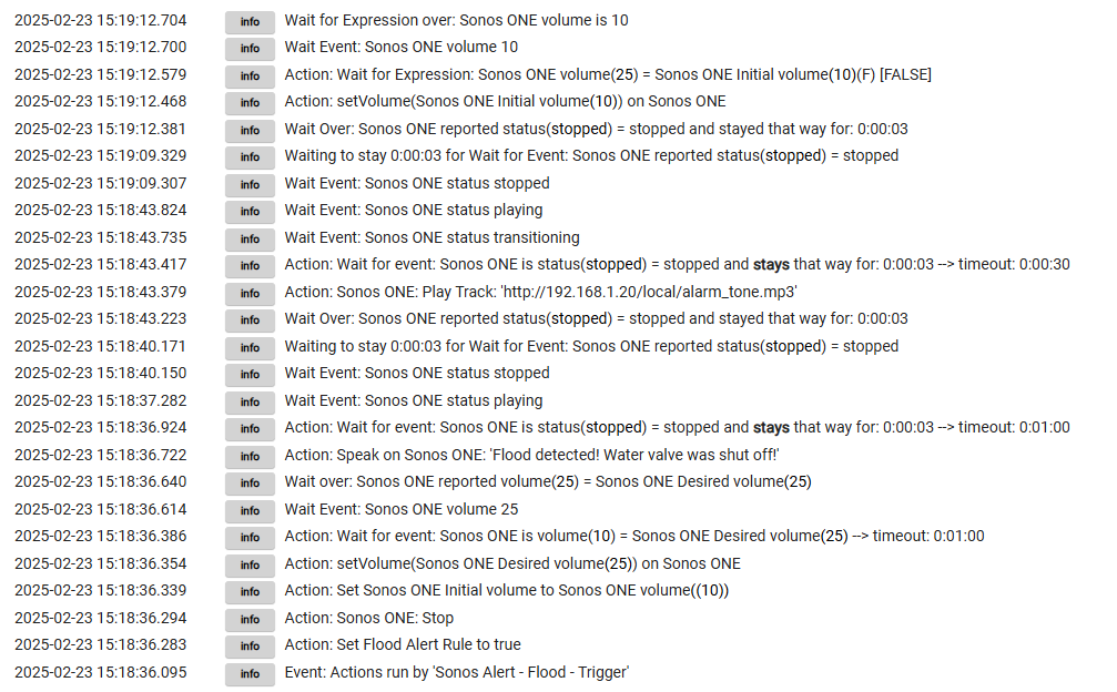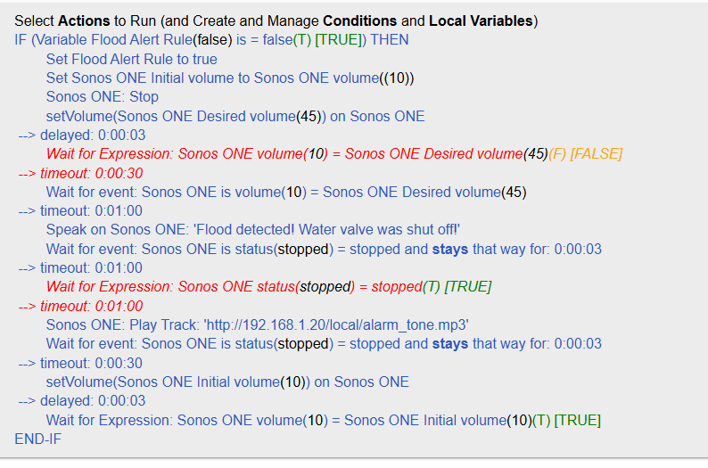 Regarding multiple instances, i've used a boolean variable to make sure that does not happen. Basically if the rule is executed the boolean Flood Alert is set to true. Only after i manually reset the hsmAlert the variable is set to false.