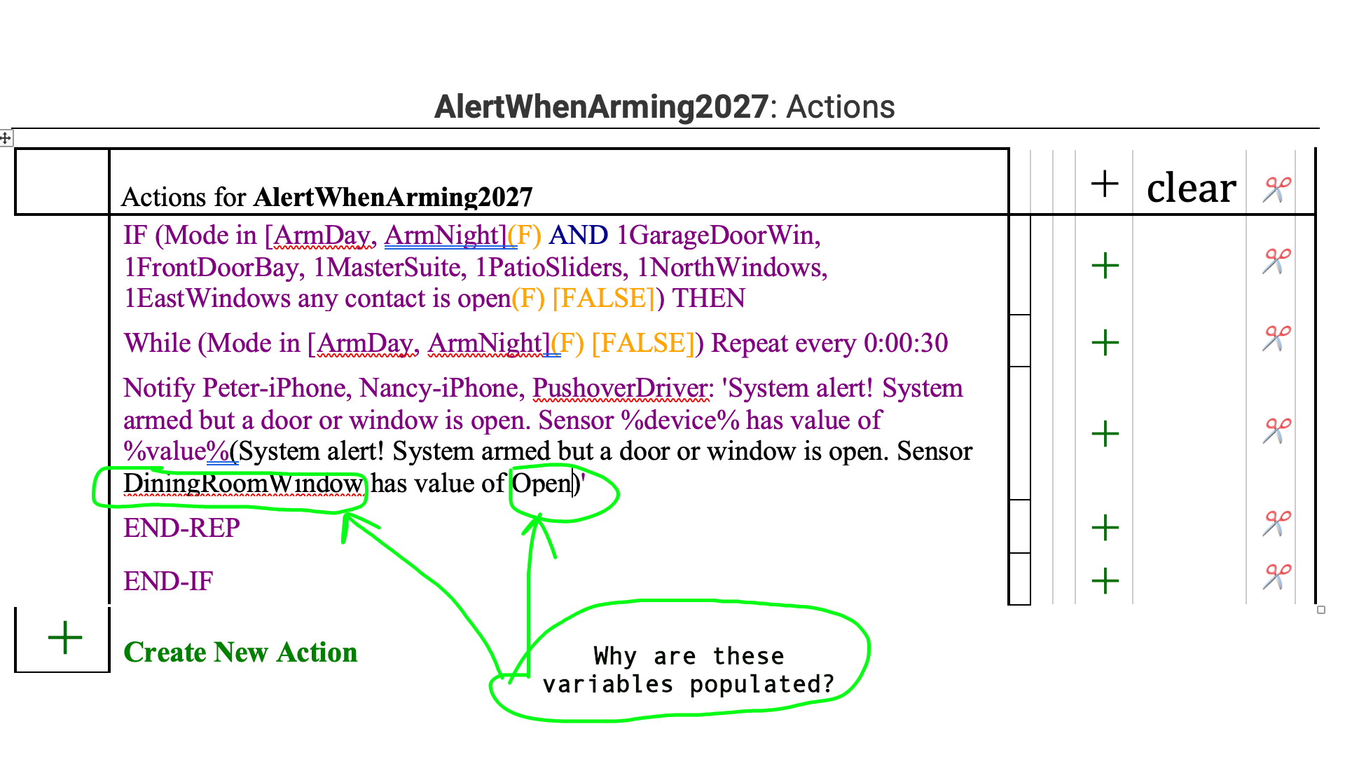 Hi, I notice that when I edit a Rule Machine rule it is populated with variable (strings) that appear to come from the last time the event was triggered. Why does Rule Machine show these rules, it is confusing. Is there a way to avoid this from happening?