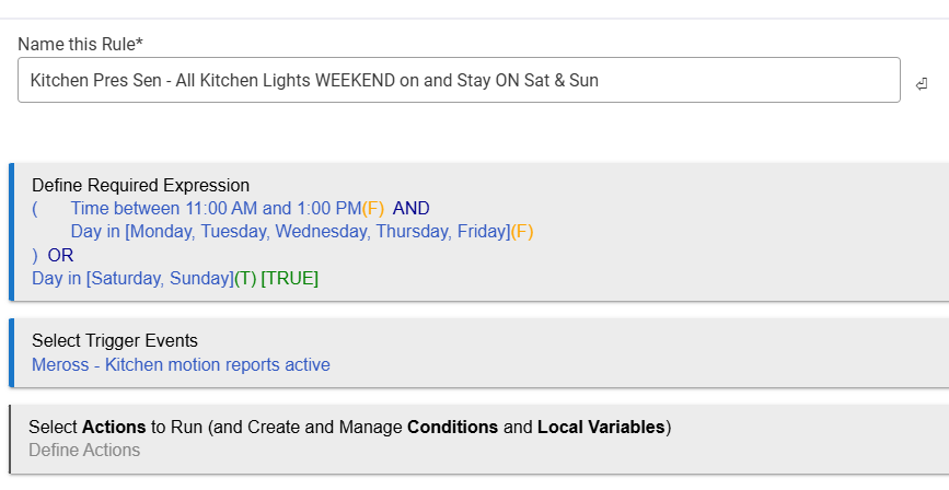 But there are some edge cases where the timing of things can potentially gum that up just enough to be meddlesome. So Hubitat's architect of Rule Machine (Bruce R) gave us a new option - a condition for the trigger (a.k.a Trigger Conditional). That condition is evaluated immediately at the trigger event.