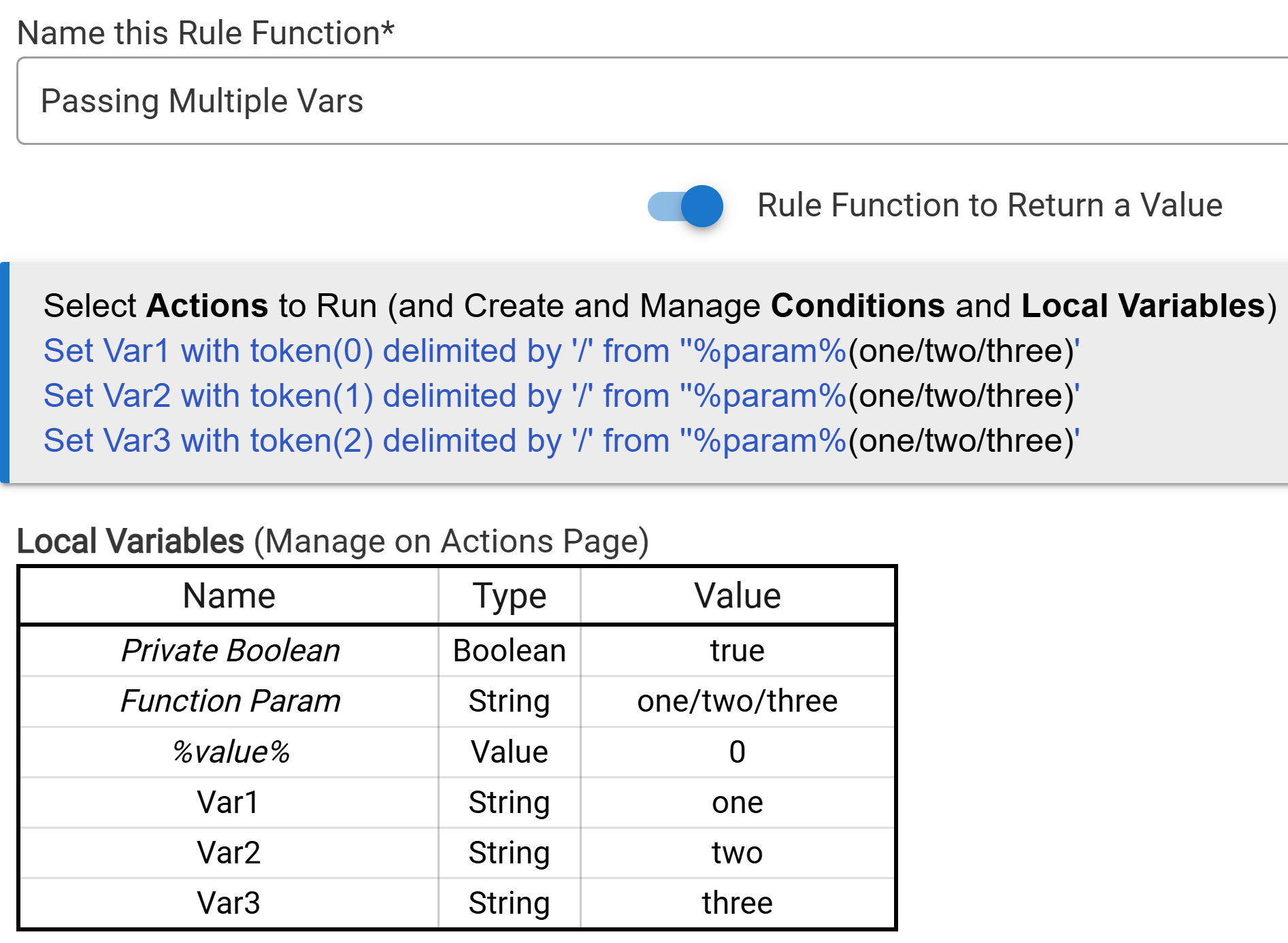 this was in reference to the new rule as a function. How it needed Hub Variables to pass data back and forth. I observed that already was available. Using Hub variables to pass data between rules.