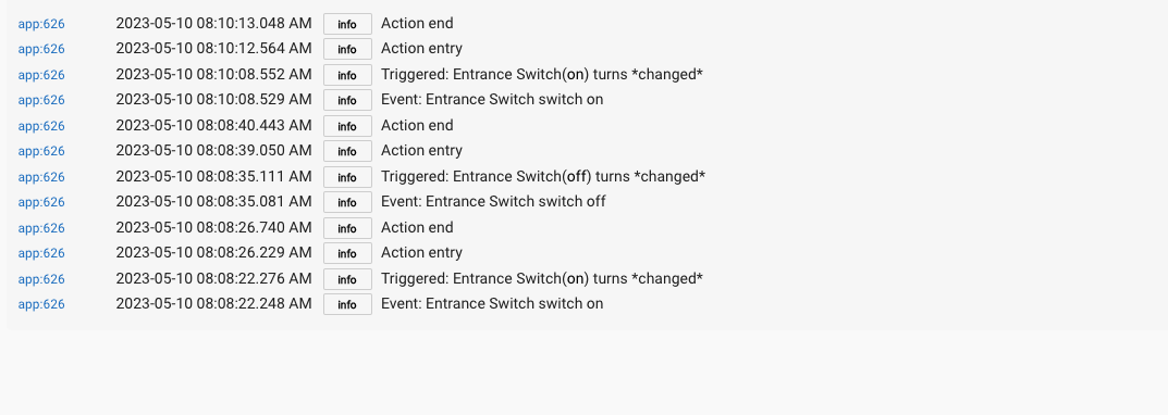 Next issue is that the lights are not just controlled by the wall switchs (these are standard mains wall switches that connect to an Aqara relay which just sends switch state). But the lights can be turned on and off by various other things like ambient light sensors, so I want it so that changing the state of the switch toggles the state of the lights regardless of whether the switch is on or off.