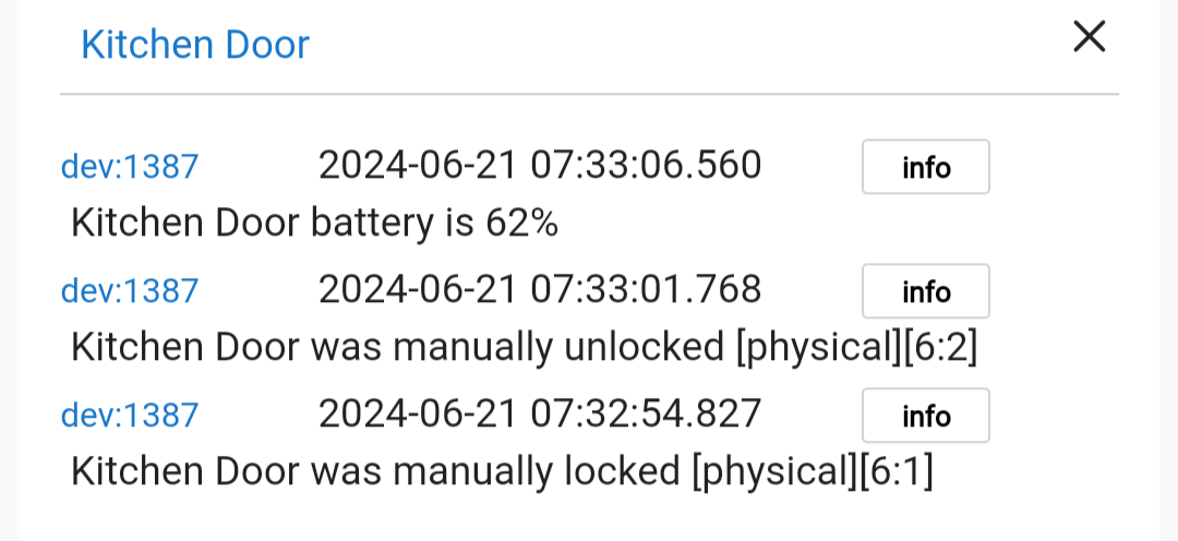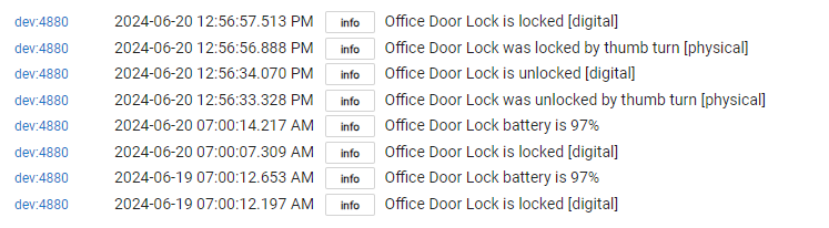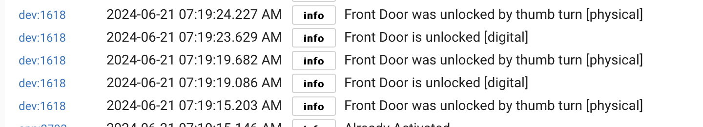 Example I locked this door and then 1 second later unlocked it. In the logs I got this: