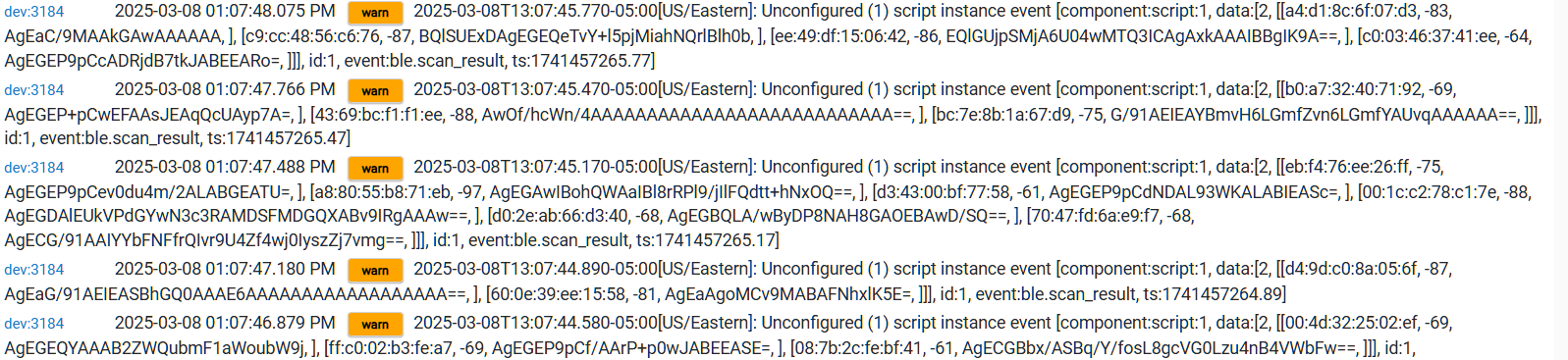 To handle pre-BTHome devices there should be ether a script or script+driver/app that filters out BT device MAC addresses (those hex numbers with semicolons after every second digit in your log screenshot) and decodes their message payload.