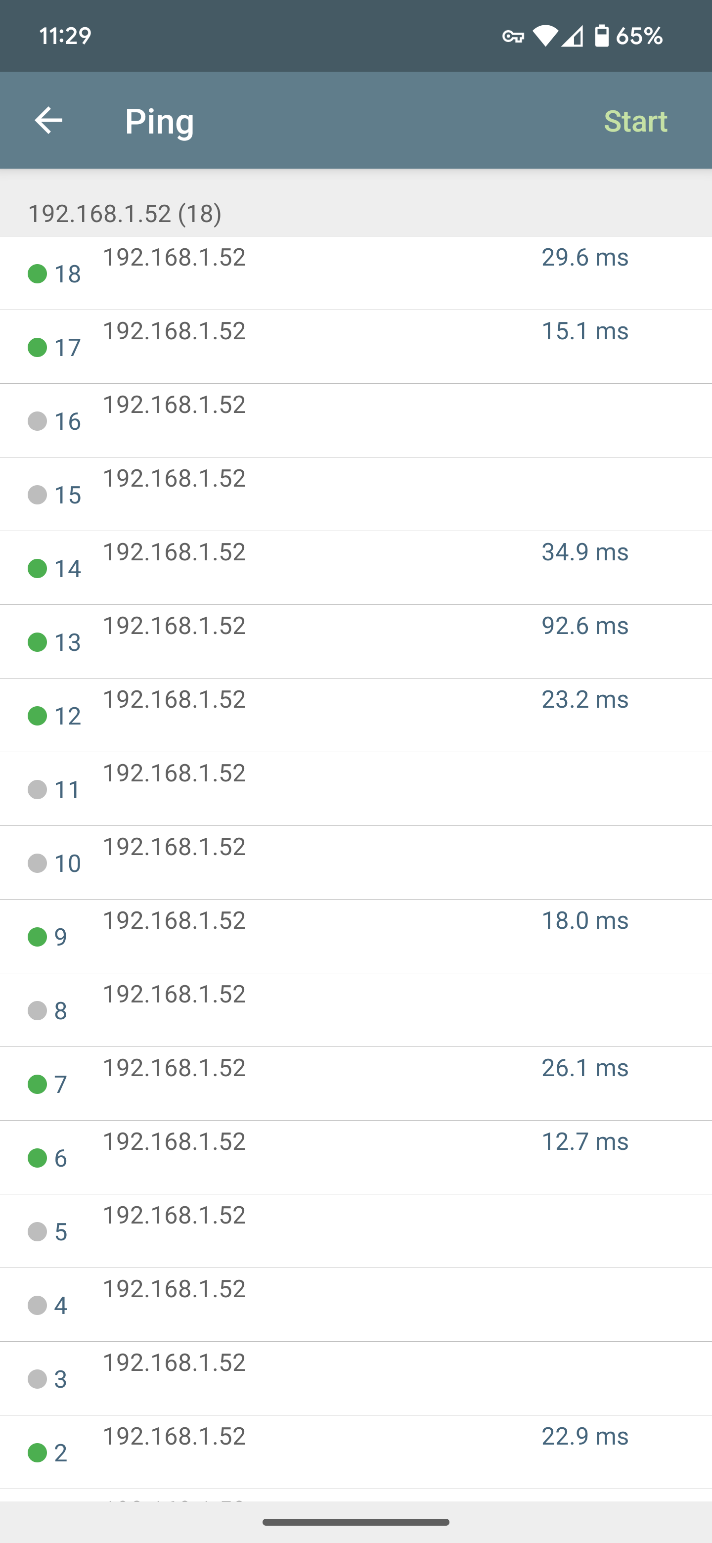 No other devices (34) have this issue and they can all be pinged with ping -t with very little or no missed pings.