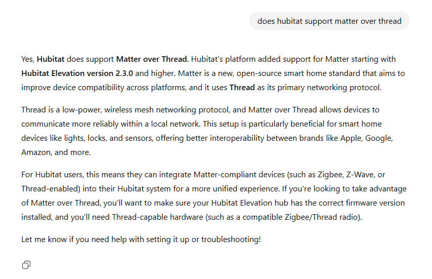 Regarding upgrading the hub: Since I only run one hub, I'm waiting for an entry level Hubitat (ie a non pro version) with a thread radio. Hopefully that is on the horizon.