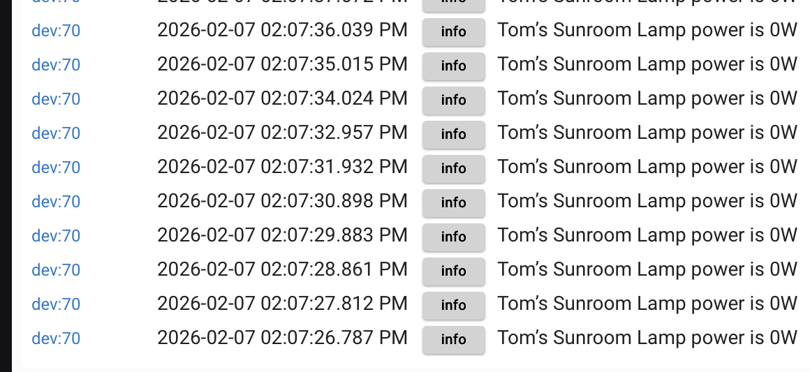 In fact, my non-Matter based drivers specifically have a bit of a work-around on this to alleviate some of the hub load. I found in my testing that "waking" the driver isn't much load. Doing some parsing, also not much load. Every "sendEvent()" call... that's where the load seems to be concentrated. So what I have my drivers do is only call "sendEvent()" once every 10 power monitoring reports and take the average of the 10. Doesn't cut the load by 90%, since it's still waking and storing the values in 'state', but it's still a pretty solid load reduction. Possibly something similar can be implemented on the Matter side.