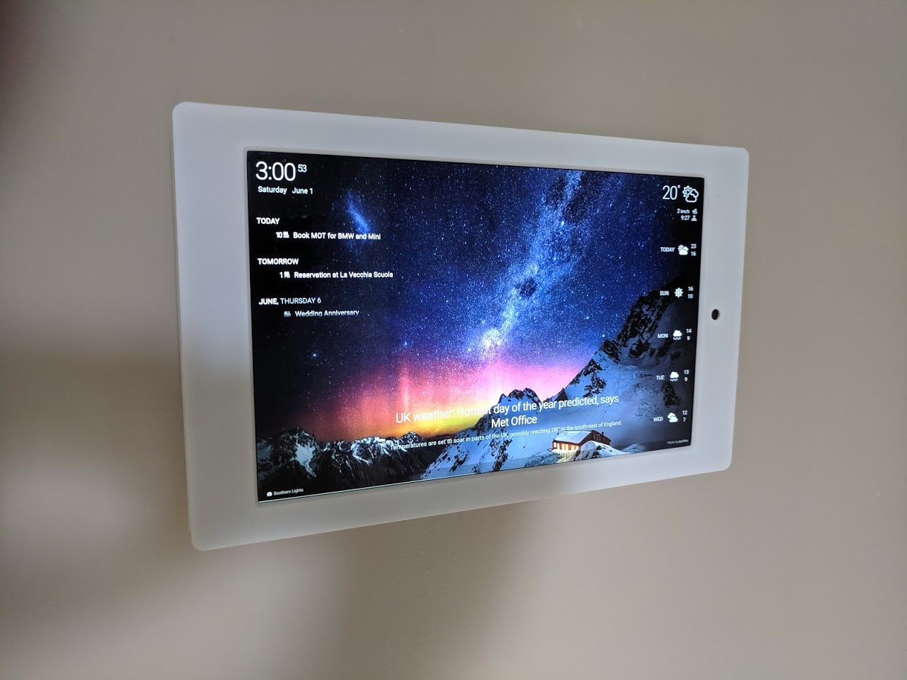 - Install DAKBoard: DAKboard - A customizable display for your photos, calendar, news, weather and more! Then add your bespoke URL to the Fully Kiosk Browser.