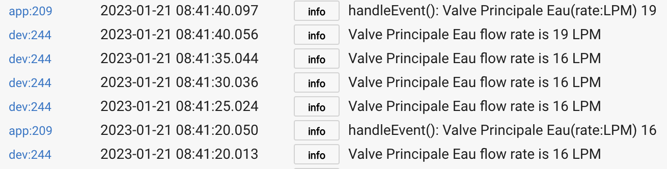Here are examples of what I see in my logs : app:209 is subscribed to the "rate" attribute event on dev:244 (Sinope Water Valve (VA4220ZB) ).