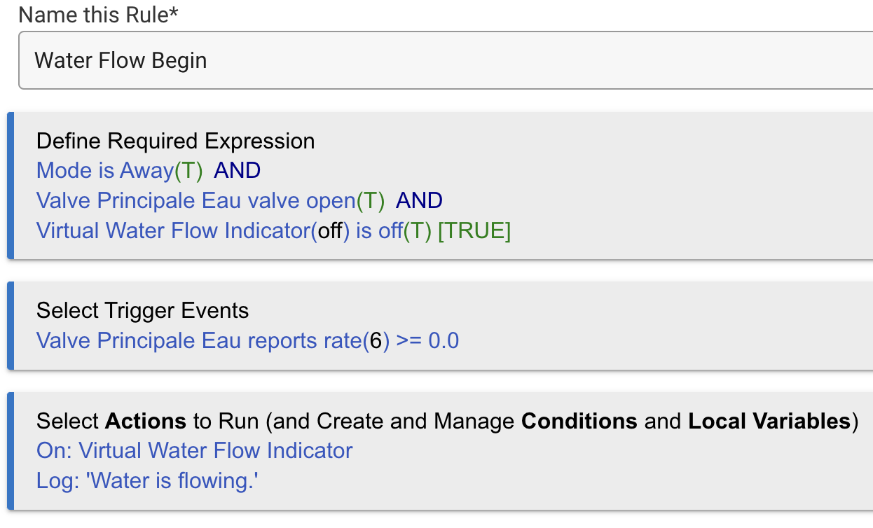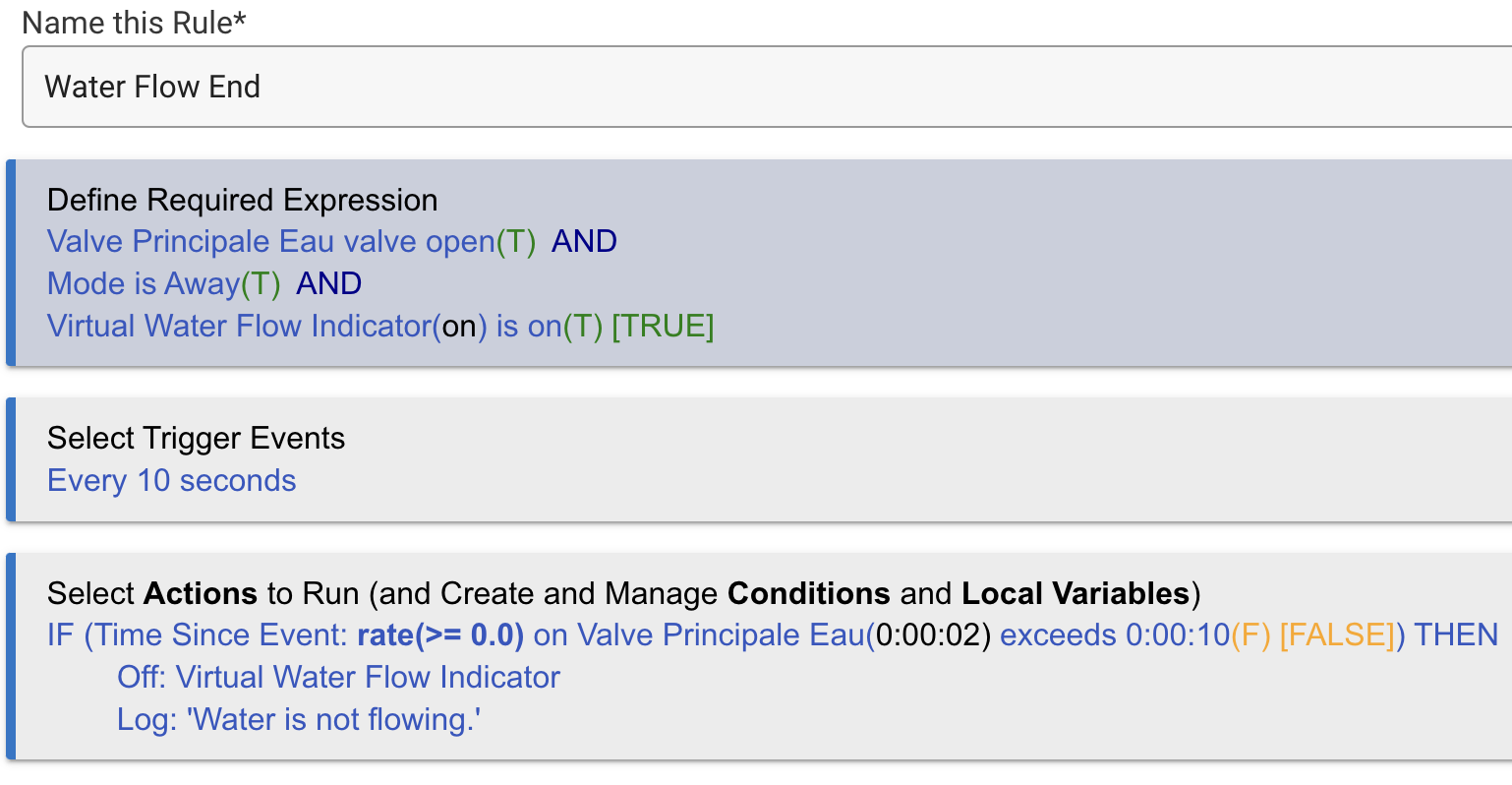 Knowing this, is it possible to use the flow meter in a rule to detect leak? If I understand, a use case like "IF mode is Away AND flow > 0 THEN Close valve" may not be possible?
