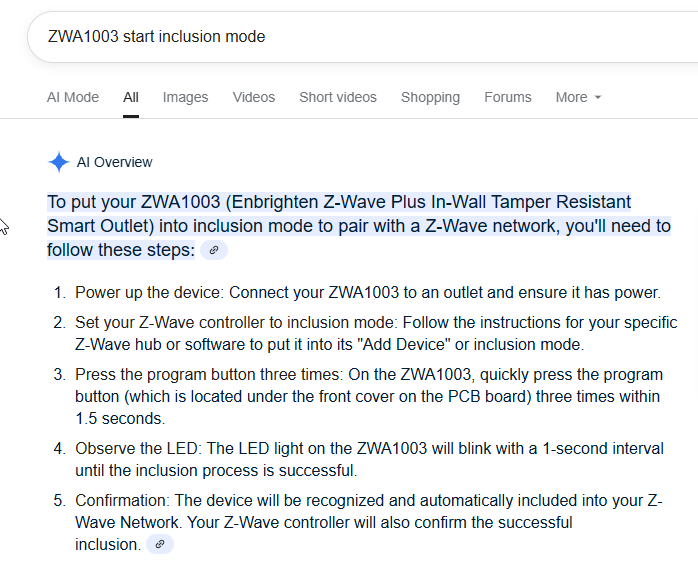 The AI summary says to press 3x, and the z wave alliance instructions say to press once so...