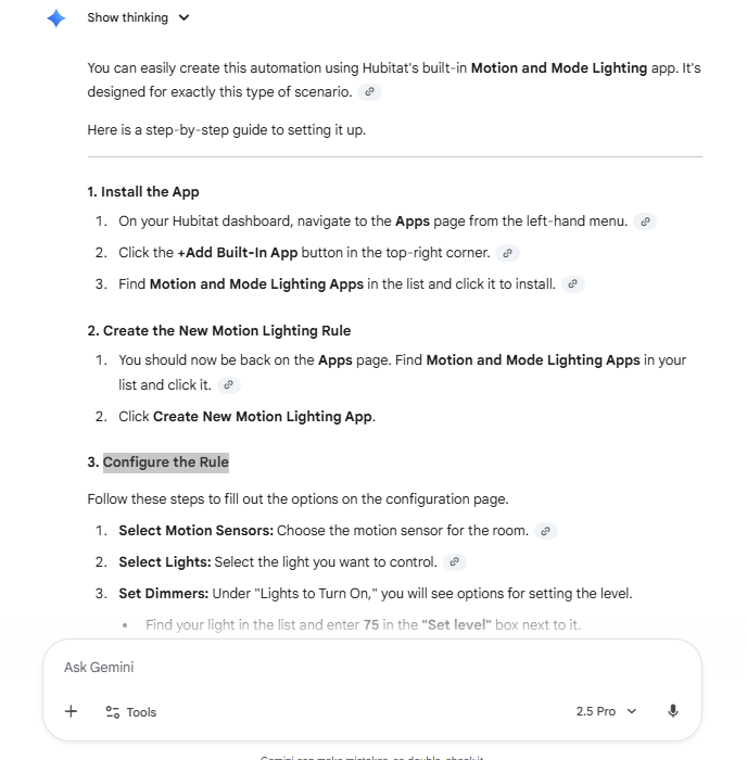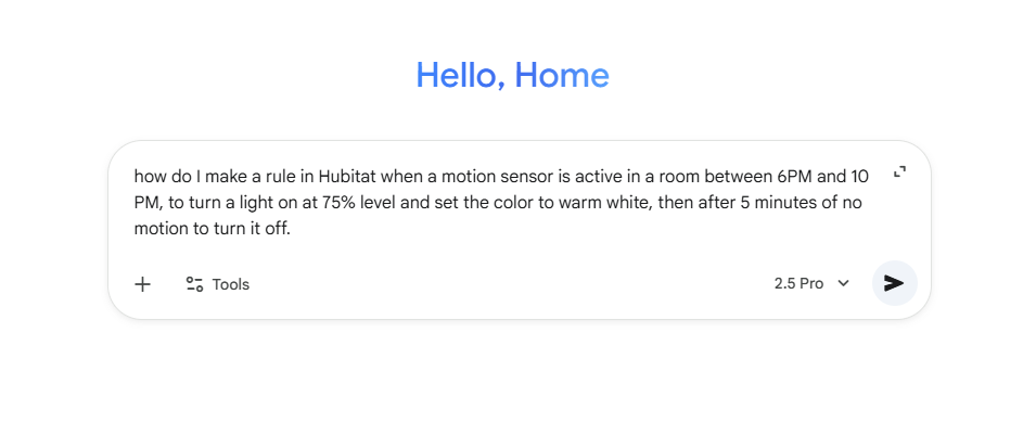 This is exactly how our engineers envisioned the next-generation of rules building engine — where AI understands your intent, and your Hubitat responds instantly, without ever relying on the cloud to act.