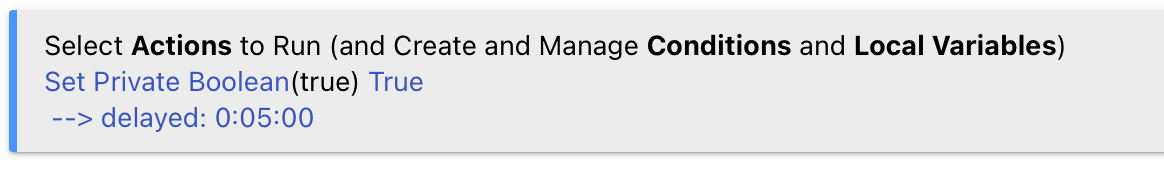 Thanks, I've used the private Boolean in some of my other rules. But I thought this would be simple! I still don't understand -- Regardless of whether there are multiple executions, I would think a 5 minute delay would be 5 minute delay, regardless.