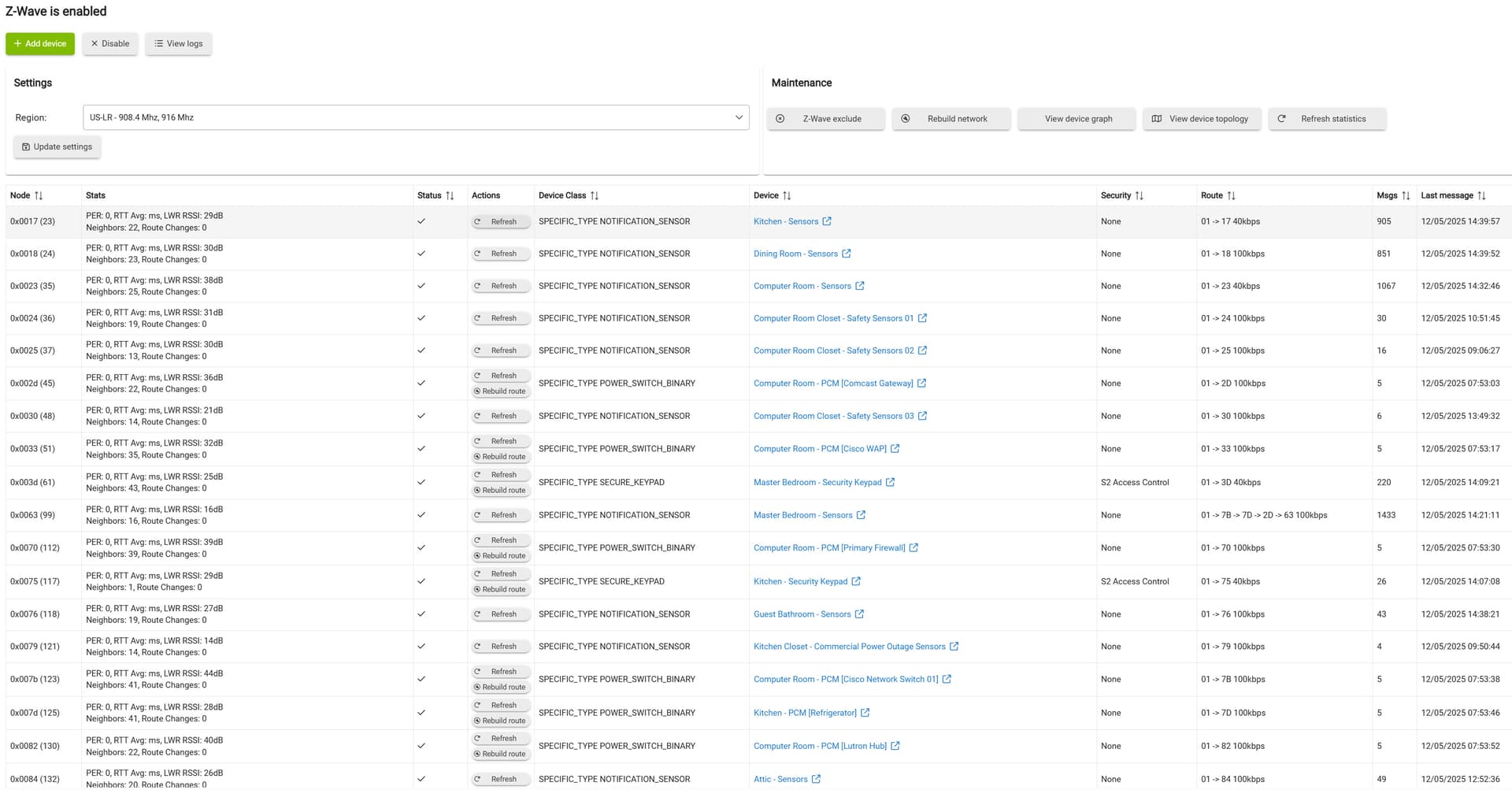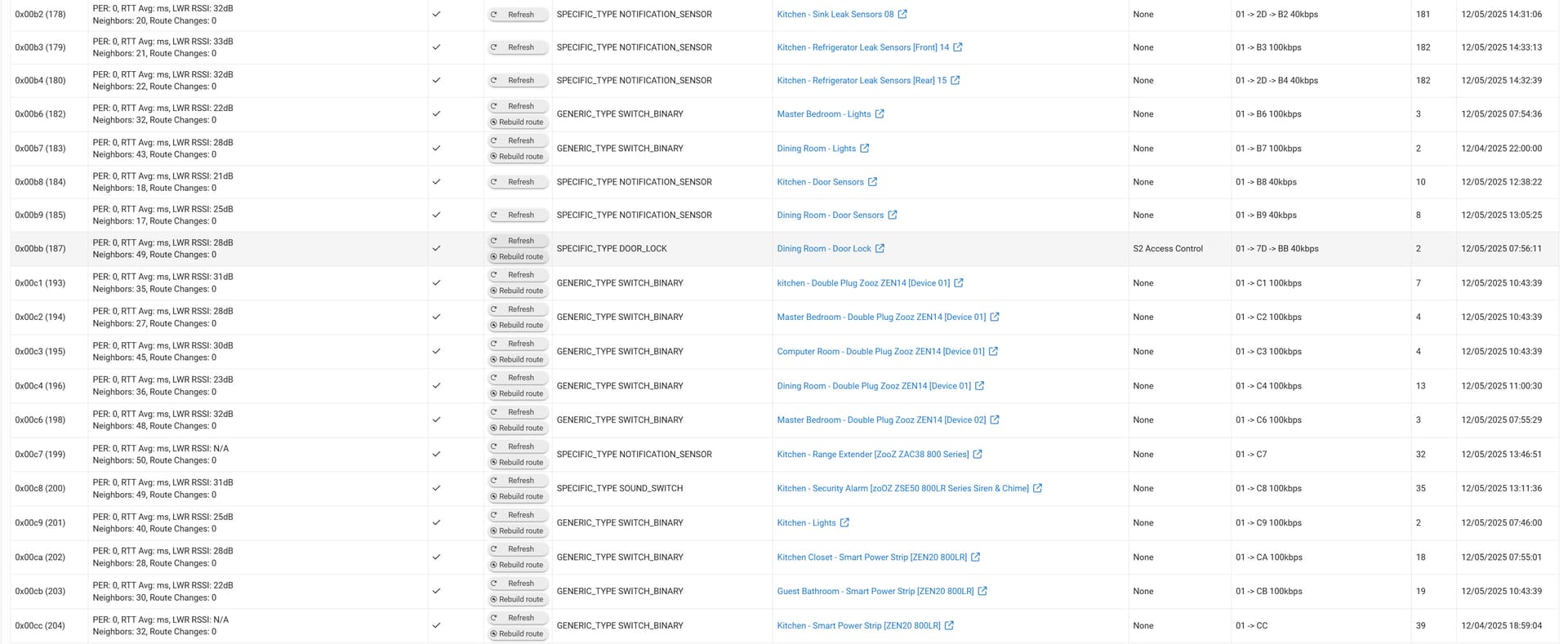 I am including the screenshots below of the ZWave results after the upgrade as I suspect this may be part of the questions for those willing to help with the issue after that work. I also want to paste this link into another thread discussing the value of upgrading to ZWave 800 series devices. For me it was very positive. The routing resulted in an approximate 90% of my devices connecting directly to the hub. See ZWave table screenshots below: