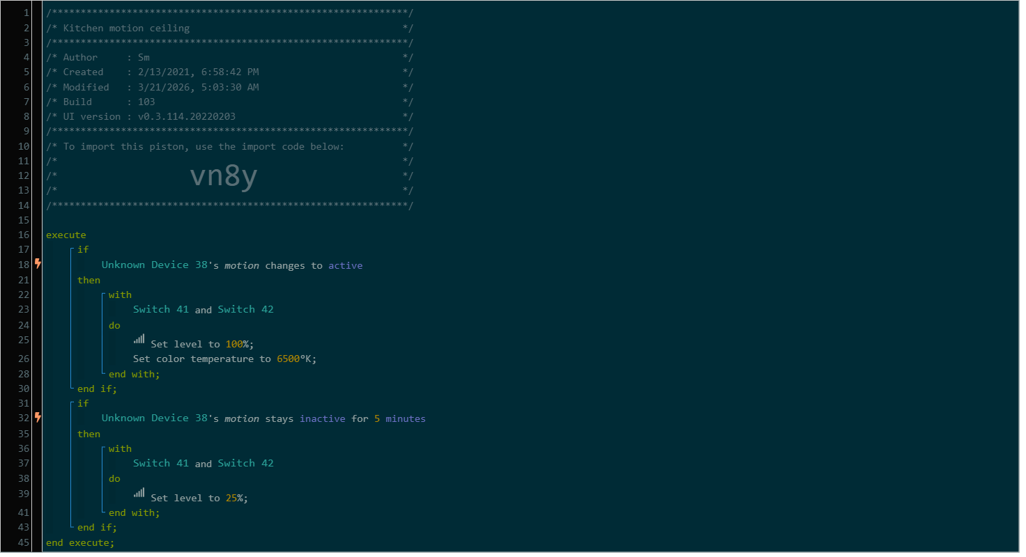 (2). “Presence” in hub language (same for Home Assistant “ as well) is reserved for if someone is inside a geofence area or has left that geofence area. Such as did you arrive home and now at home or did you leave home. So are you “present “ at home or not “present “. This is the premise behind presence in writing rules.