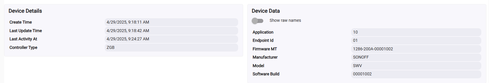 Flower Bed Deleted settings: forcedProfile (SONOFF_SWV_VALVE), logEnable (true), txtEnable (true), powerOnBehaviour (2), switchType (0), advancedOptions (false), autoOffTimer (0), autoSendTimer (false), threeStateEnable (false),