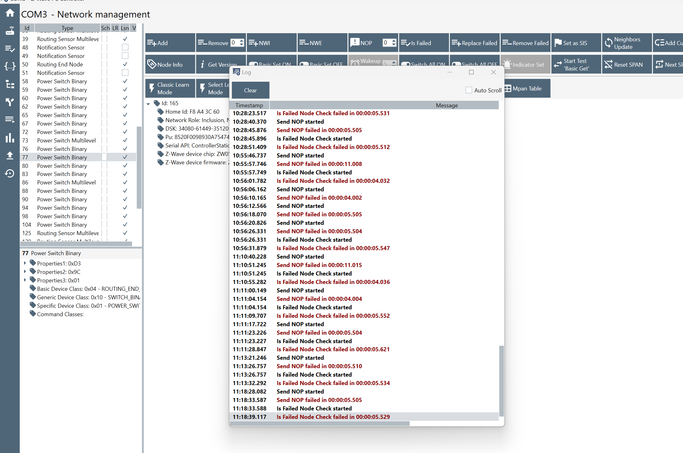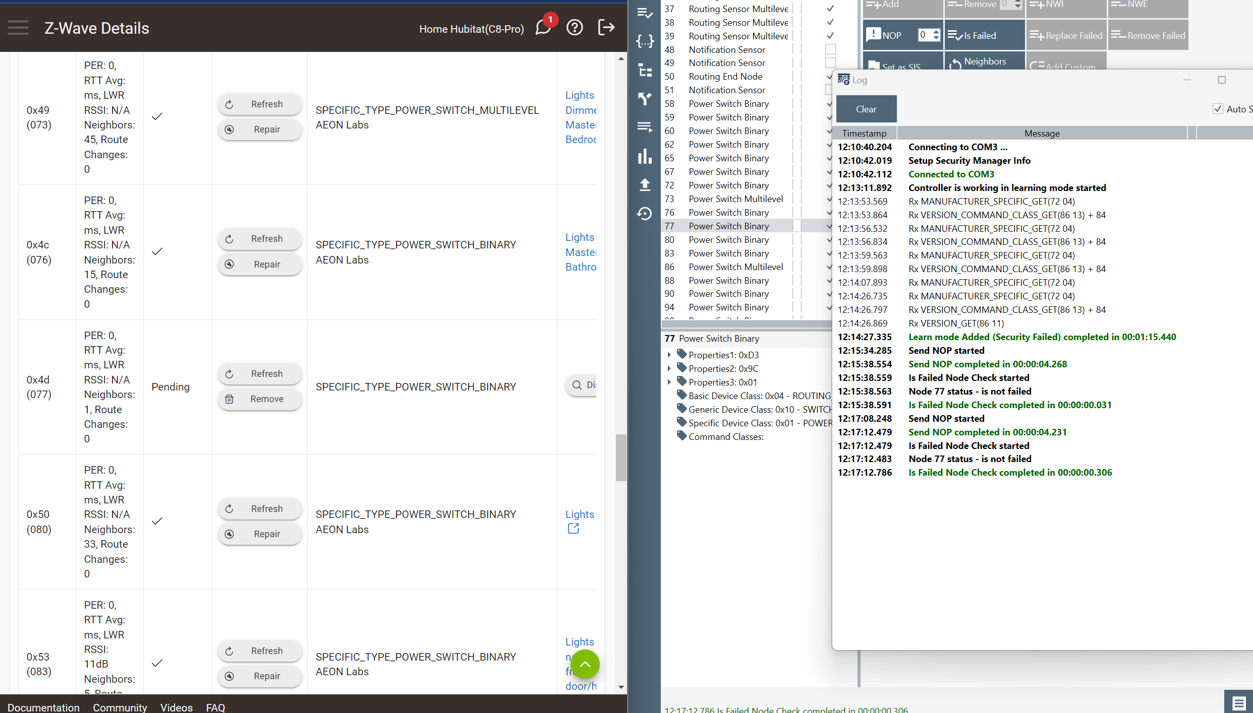 added zwave usb and set to "isfailed" (see screenshots, using zwave controller)
