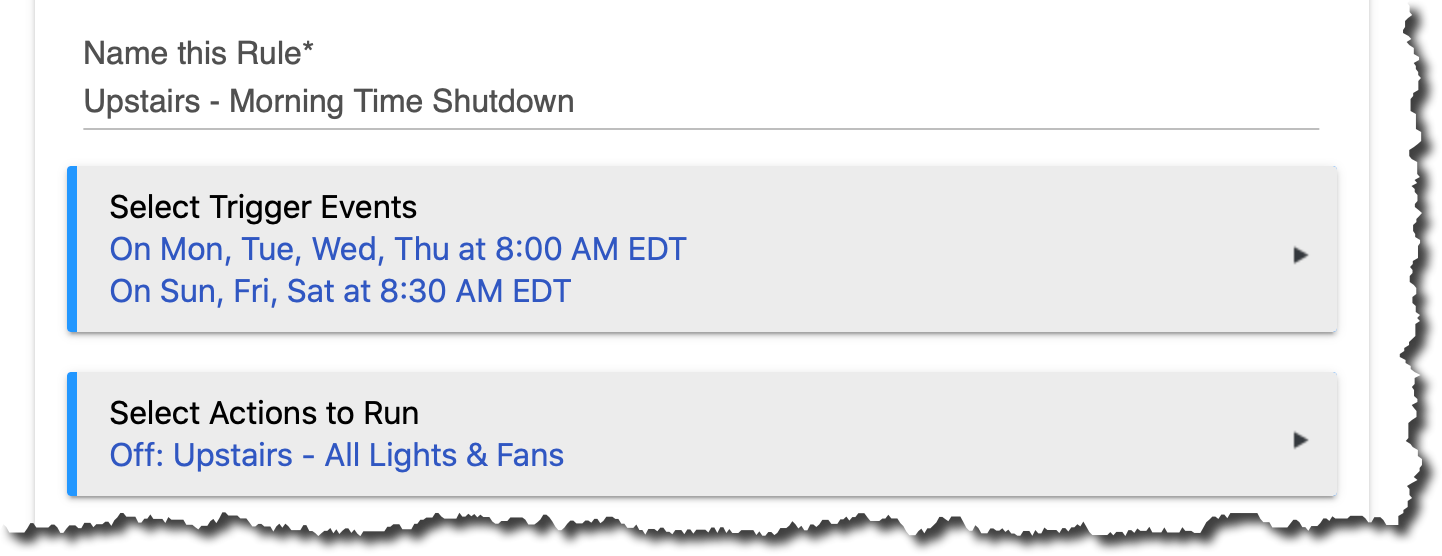 So after updating to 2.2.3.145, it appears a bug has shown up in the "Simple Automation Rules". My automations that use a sunrise / sunset trigger seem to be failing to run. If I go into them and manually run them, they work, but they just appear to be missing the trigger. When I look at the logs, I don't see the rule trying to run or the devices in question being triggered. I do however see the devices being triggered correctly from the Rule Machine.