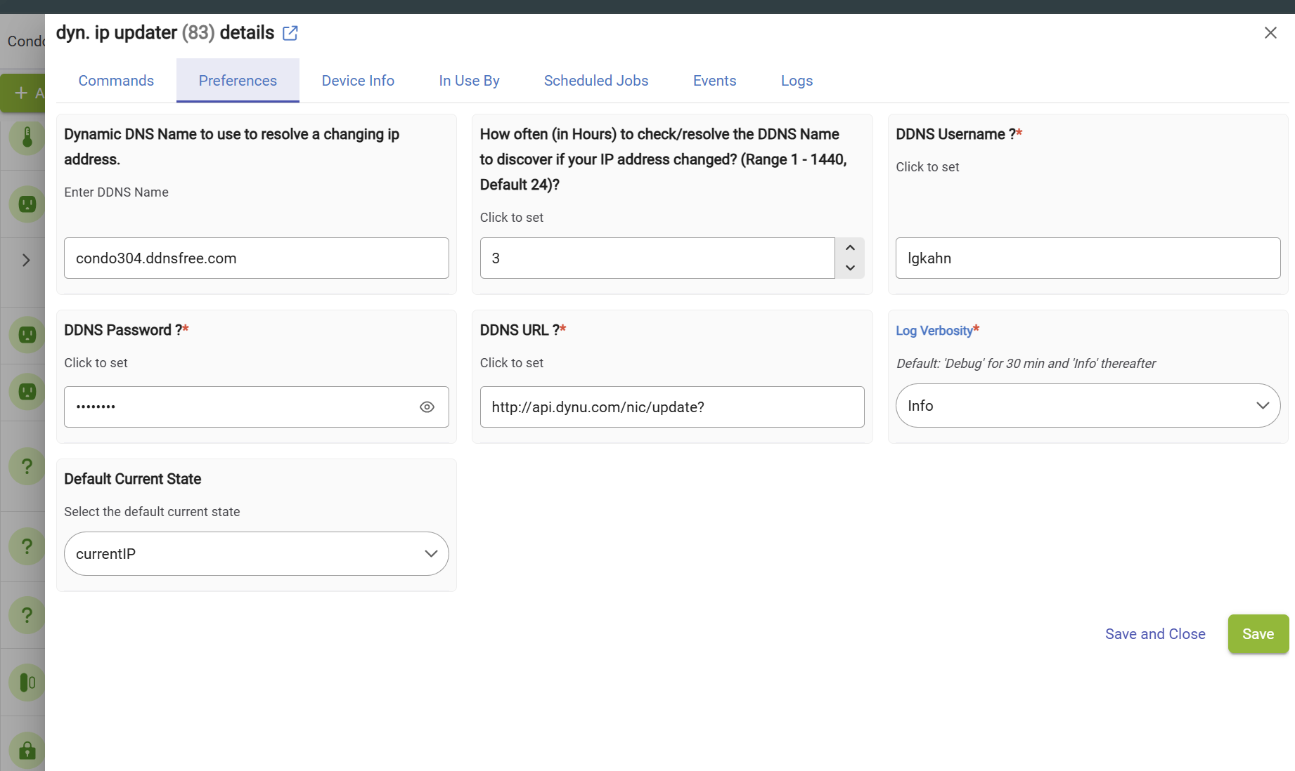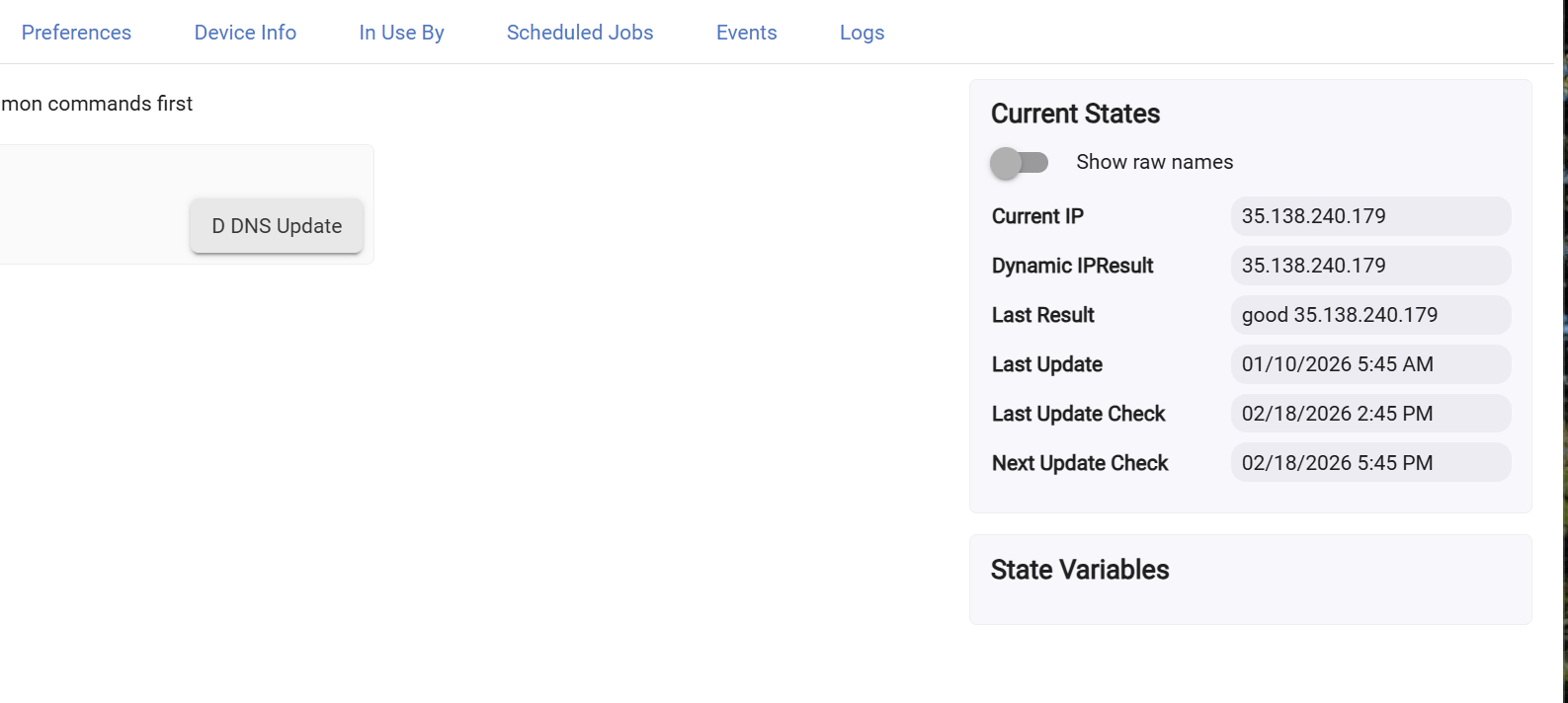 Here is a hubitat device that checks for an ip change and when it sees it calls a web based updater url.. right now hard coded for dynu dns service but could easily be changed for others.