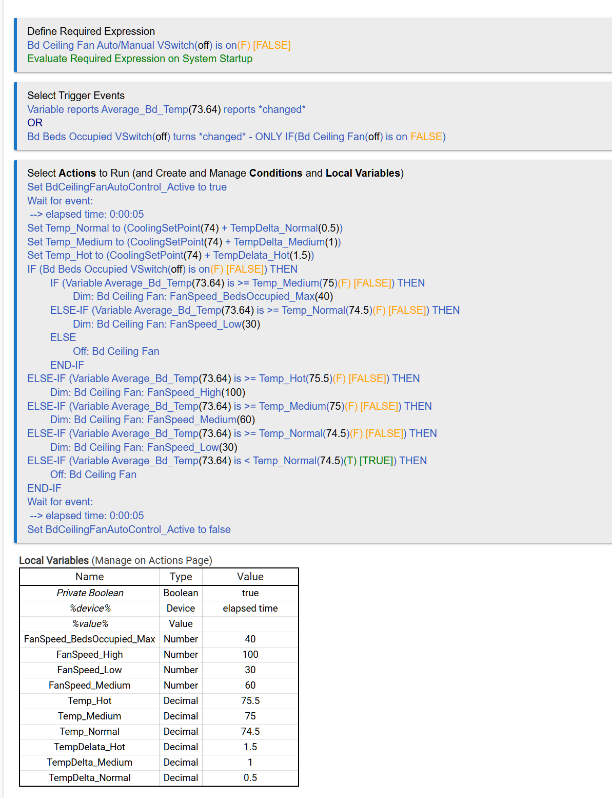 Again, I am using Set Level option in a fan child driver (not a preset speeds). As you can see, my rule defines 4 speeds to whatever level in percentaige I want (0-100%). I did not test all 100 potential levels but tested in increment of 10%. My fans responded very well. For the rule I picked final speeds after few itterations.