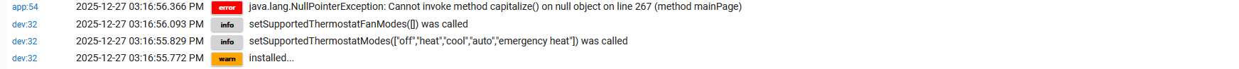 I'm trying to set up thermostat control for Tado Smart Radiator Thermostat X thermostatic headers. I've added them as Google Nest Matter Thermostat and when trying to create the thermostat app i keep getting errors like this:
